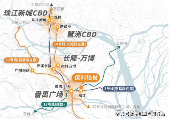 区位优势 保利琅誉坐拥极佳的区位优势。项目距离即将开通的地铁3号线东延段傍江站仅有590米的直线距离,预计2024年9月开通,无缝对接番禺广场站的五轨交汇,也就是地铁3号线、18号线、22号线、3号线东延段(在建中)和17号线(规划中)五条线路纵横交错,可以快捷抵达珠江新城等重点商圈。未来居住在保利琅誉的业主,将享受到前所未有的出行便利。