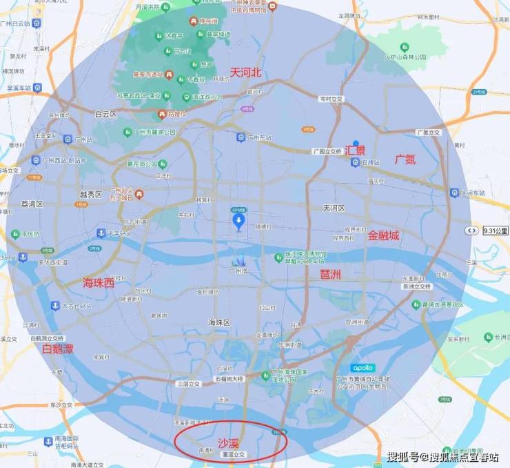 沙溪虽然是番禺,但其和珠江新城的直线距离和三溪是一样的,都在珠城9公里范围内,那可是20万一平的广州顶豪。