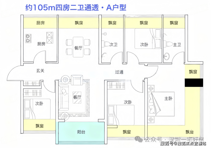 四开间朝南+全屋八面飘窗,阳光平铺每一室