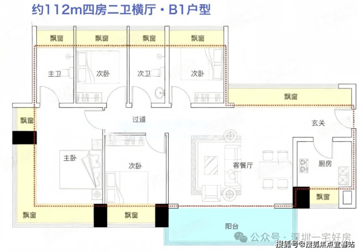 B1户型|112㎡ 4房2厅2卫(满赠横厅旗舰)