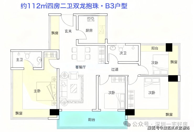 B3户型|112㎡ 4房2厅2卫(满赠双龙抱珠版)