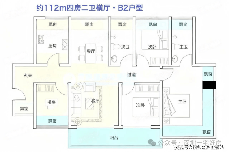 B2户型|112㎡ 4房2厅2卫(满赠南北对流版)