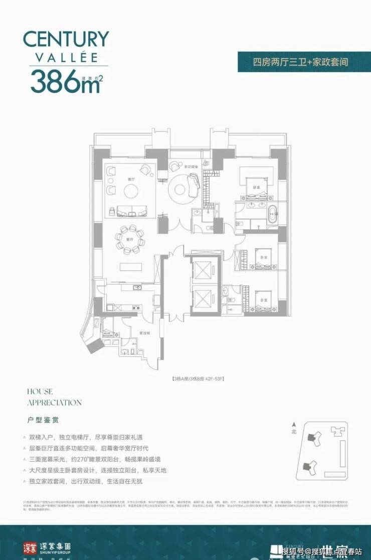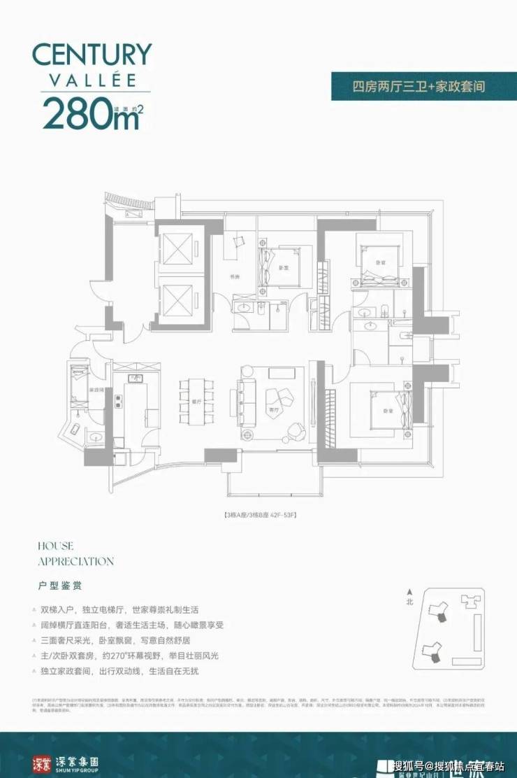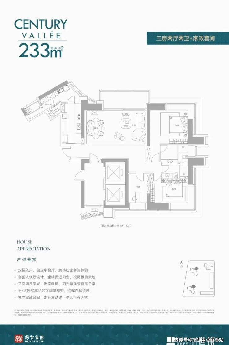 户型方面,建面约233-280-386平方米纯粹大平层豪宅户型,约270°阔景视野,三面阔尺采光,让居住者能够举目壮丽风景,拥揽自然诗意。此外,项目还为未来业主们独具匠心打造了“世纪会增值服务空间”,包括专属运动康养天地、生活艺术聚集地以及私人会晤等三大服务空间,带来非凡的圈层体验。