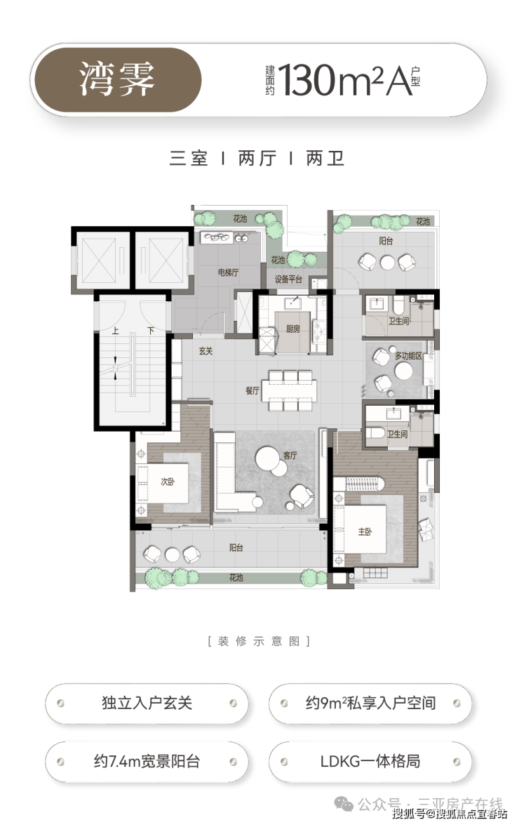 建面约130㎡户型一镜到底