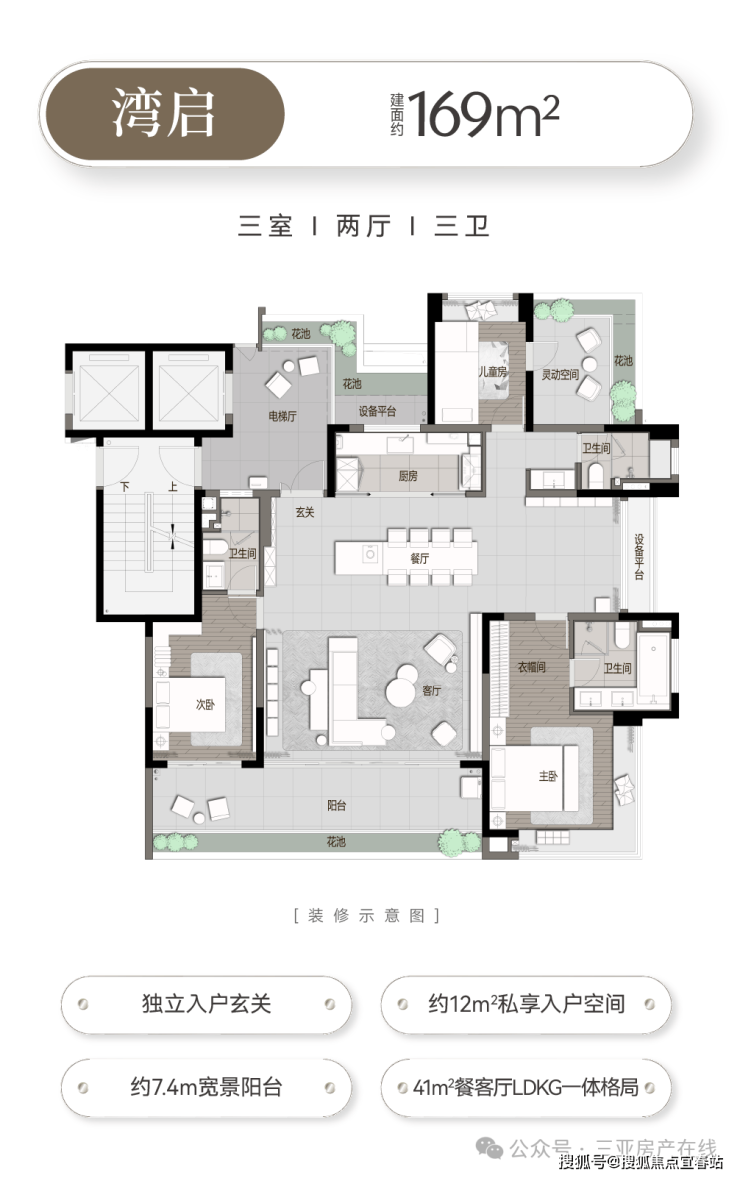 建面约169㎡户型一镜到底
