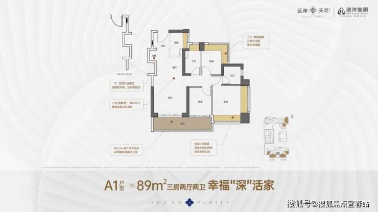 89㎡,到改善的约110-128㎡,均设计了连通客厅和次卧的双开间景观大阳台,尺度达到了约5.9-6.5米。