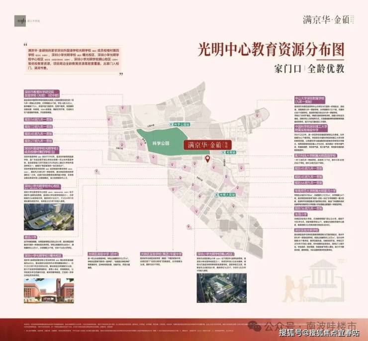 光明中心区科学公园内目前体量最大的新盘、科学公园头排的满京华狮山项目,相当值得关注。这是一个近百万方的综合体大城,集高端住宅、商业、办公于一体。