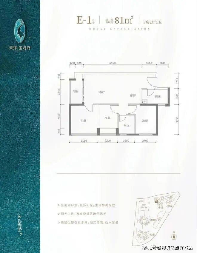【双阳台·超高实用率户型】V型塔楼布局,南向阳光户型,约80%高实用率,双阳台,光明罕有绝版户型。建面约80-143㎡2-4房河岸美宅,赠送高标准绿建简装,舒适2T5/3T6,向往的生活在这里触手可及。