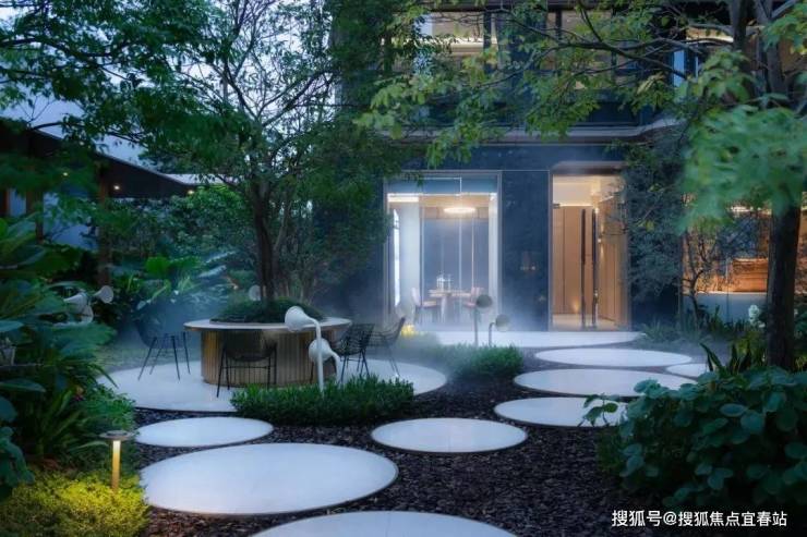 置身海语花园中,休憩卡座、种植池、汀步皆以圆形注释,赋予柔和视觉盛宴,为海居生活增添美好。
