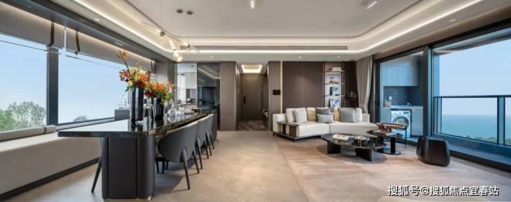 滨海润府,入户、餐客厅、卧室均打造全景飘窗、系统门窗,迷人风景跃然眼前,日常生活向海而生。