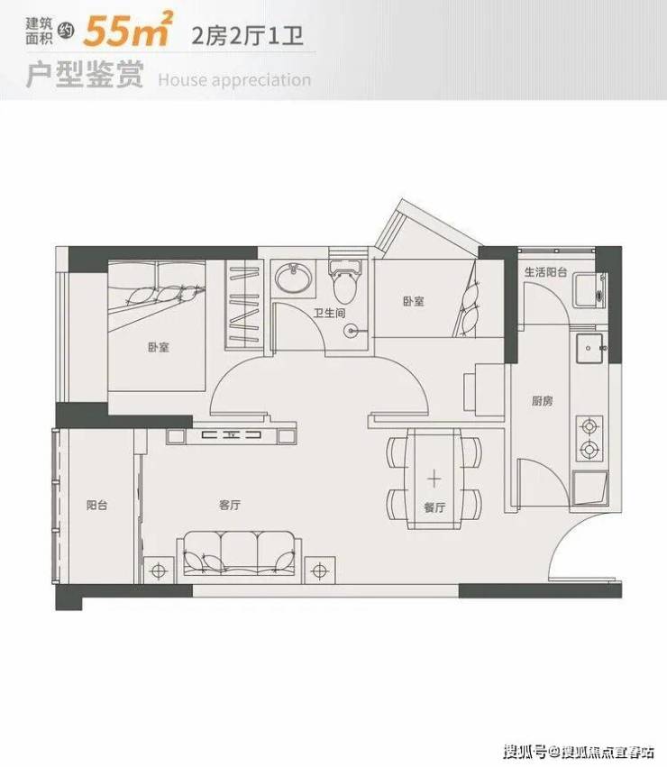 这种面积段产品如今在新盘市场上很少见到做到两房+两阳台的,对于小户型来说多个生活阳台是大加分项。