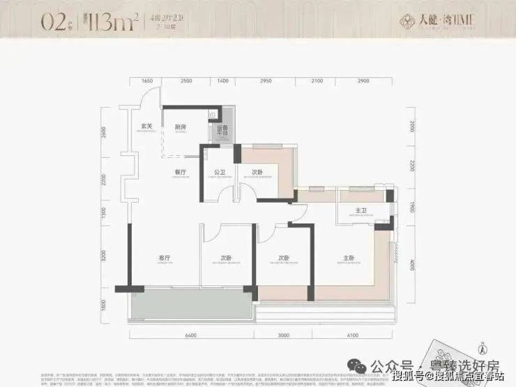 户型为113㎡四房114四房和139㎡五房约290套,2栋100米内30层住宅,2梯5户,其中主力为113㎡四房,整体以朝南及西南为主,有两套朝东北面向金众。