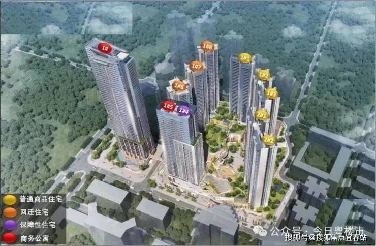 项目住宅产品建设用地面积约 4.1 万㎡,计容建面约 29万㎡,容积率 7.03,规划机动停车 2681 辆。项目由5栋住宅(1#1、1#2、1#3,2#2、2#3)、1栋(1#4)保障房、3栋(1#6、1#7、1#8)回迁房组成、1栋(1#5)公寓组成。