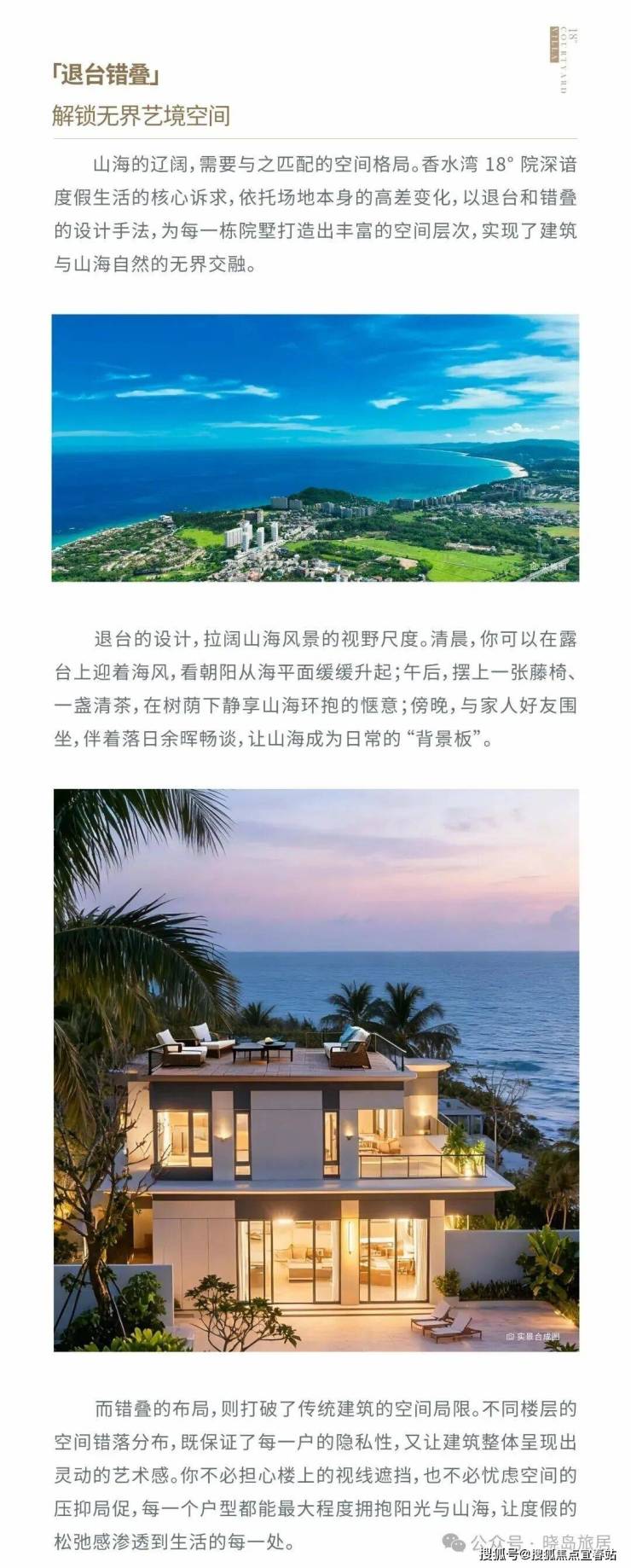 香水湾十八度院,倾注盈新发展匠心品质基因臻筑,以“地产、文旅、金融”的战略定位,为一线海居跃级而来,携手国内知名品牌单位联袂精著,打造经久不衰的山海孤品院墅。立于自贸港珍珠海岸之上,代表世界陵水的人居品位,大成而立。