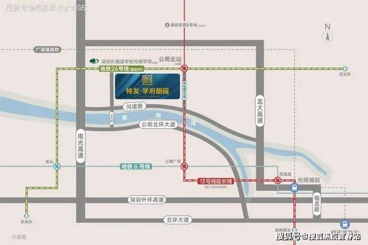 交通方面:距离地铁13号线二期(北延)公明北站200米,13号线及其南、北延长线(建设中,预计2025年开通)起于东角头站,终于公明北站,纵贯光明、宝安、南山,线路开通后约30分钟可抵达南山核心区,约45分钟可达深圳湾口岸,以高新技术人才为主要客流,被称为高新技术人才专线。