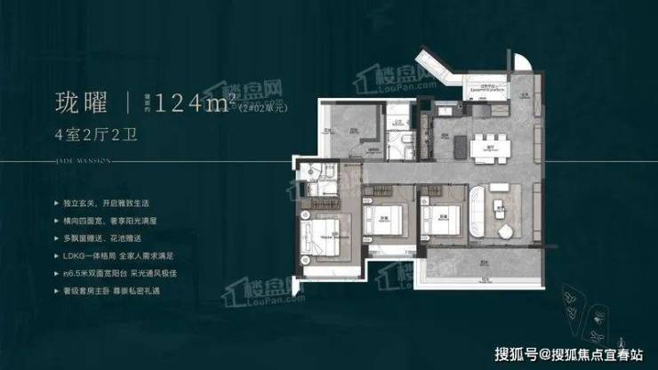 建面约131㎡的户型同样出色,入户拐角玄关设计,兼具实用性与私密性;南北对流双阳台,南向阳台长约7.5米,搭配LDKG一体化设计,拓宽了生活场景;居住舒适度堪比上一代160㎡的改善四房,实用率极高。
