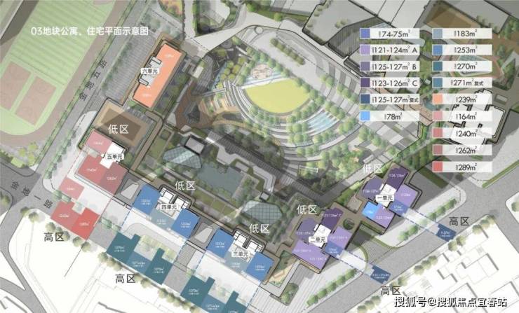 金地环湾城项目共分为四个地块,01地块是写字楼+办公公寓+人才房+幼儿园,02地块是一栋写字楼+2栋住宅+8层商业体,04地块是在建中的红岭教育集团红树林校区,03地块则是4栋住宅+2栋公寓。
