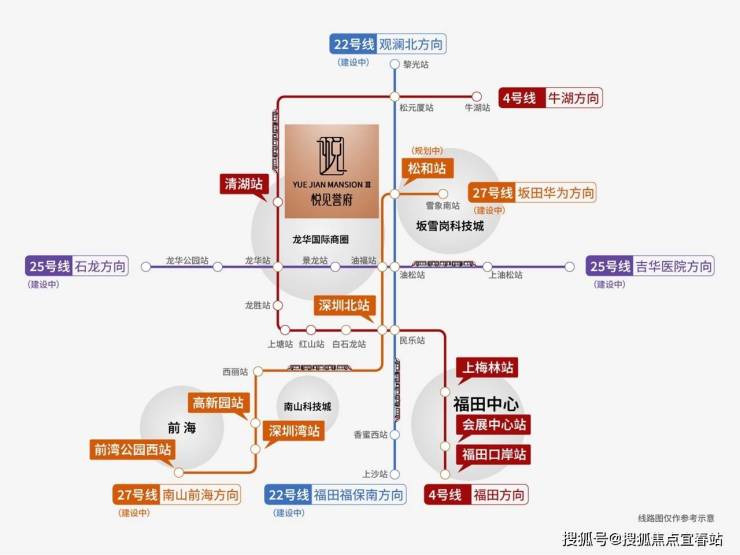 项目属于双地铁口物业,距离地铁4号线清湖站仅200米,清湖北站距离约400米,步行3分钟可达,5站可到深圳北站,8站可到福田口岸站,2站到龙胜站可换乘6号线/深大城际线路,自驾方面,距离沈海高速福民收费站约1.3公里,可快速接驳"六纵三横"路网(龙华大道、和平路、沈海高速等),30分钟可达福田CBD,40-45分钟可达南山科技园。