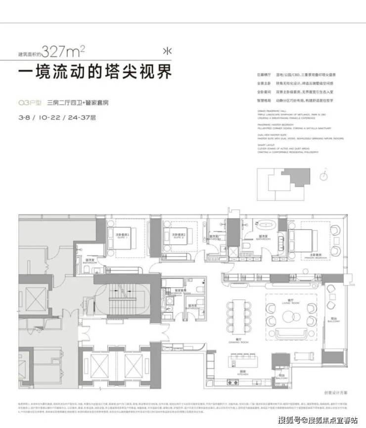 而它规划的都是约303m²/327m²/400m²/570m²/1000m²藏品级宽境大平层,