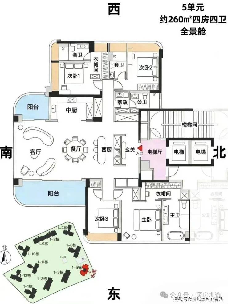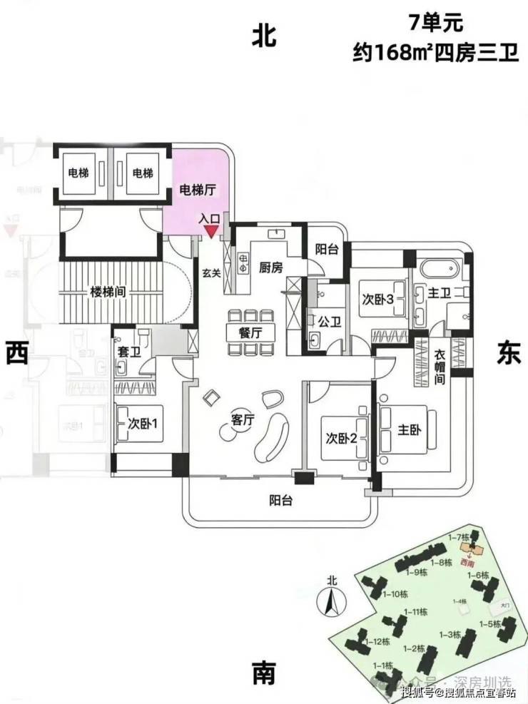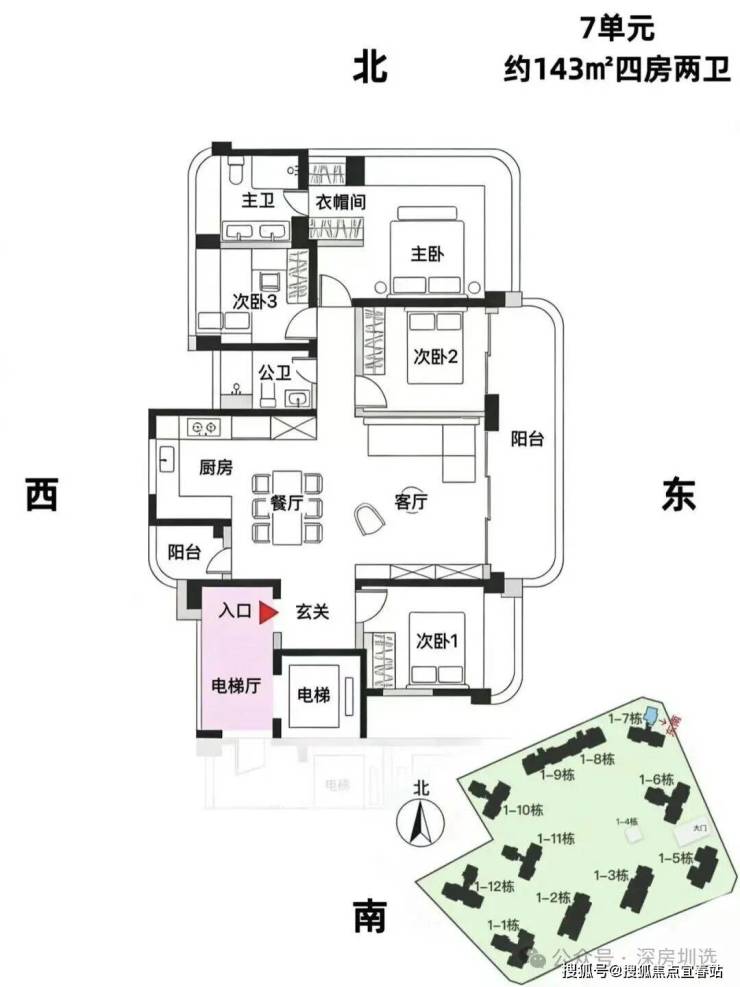 最低楼层22层,最高24层,楼层分布每楼层2-3户;地下1层,采用架空车库方式抬高地势。整体将打造约20来层的高层社区,规划容积率仅3.4,小区呈围合排布,居住密度较低。