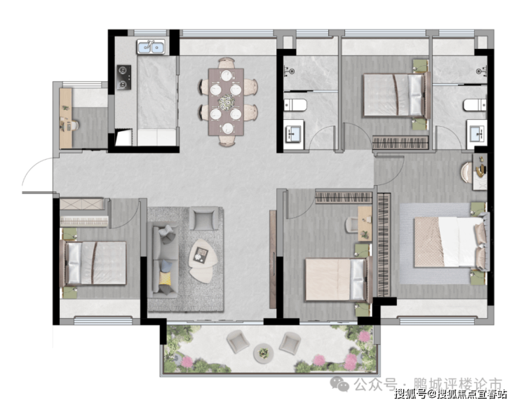 【140㎡4+1房2厅2卫】央景C位 ,南北通透 全明空间 大面采光 ,居家纵享美景 约6.6m朗阔阳台 ,广角视野尽揽公园山景 奢阔四房, 高实用率三代同堂和乐美满