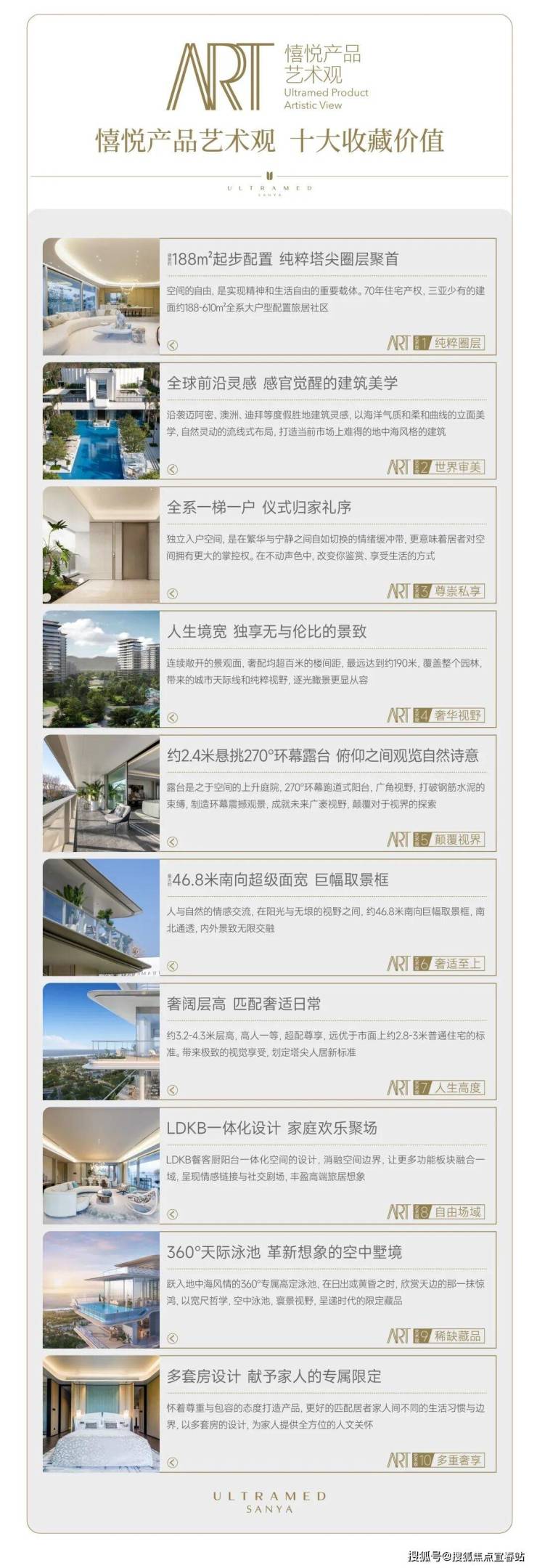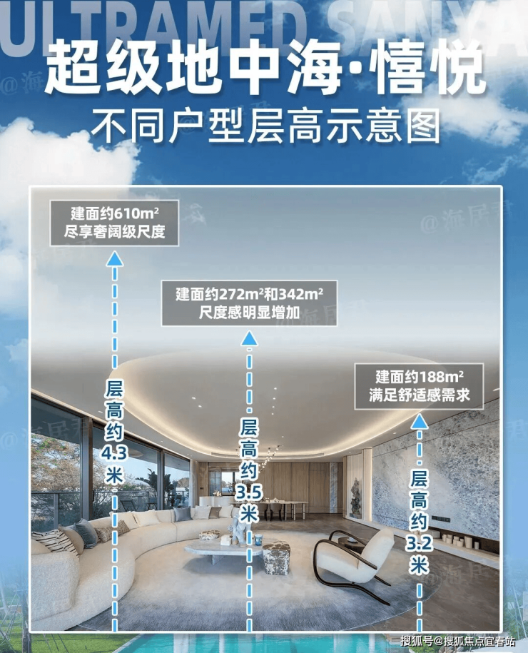【超级地中海·憘悦】项目地址:海南·三亚·海棠湾·风塘路总占地:占地约140.4亩,总建面积约23万㎡楼宇规划:14栋高层住宅产品面积:约188-610㎡大平层产品单价:6-7万/㎡容积率:约1.5绿化率:≥40%产权年限:70年