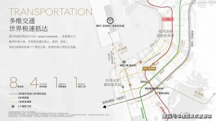 规划有 8 条轨道(含城际与城市轨道)、4 条快速路,同时 1 条跨海通道正在建设中,1 个海空口岸处于规划阶段,未来可轻松融入大湾区生活圈,出行选择更多元。