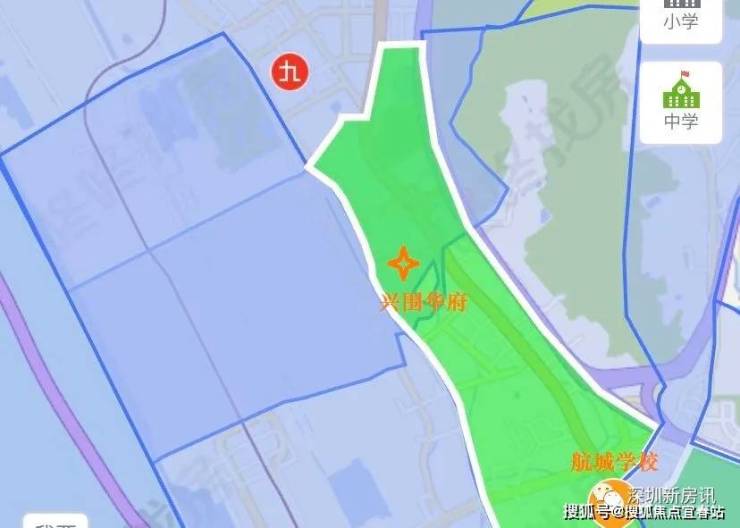 根据学区地图显示,项目位于 兴围小学、 九年一贯制公办航城学校初中部区。