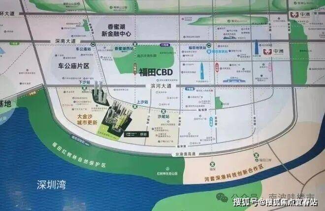 【政策倾斜 见未来】超300亿大金沙规划,唯一接驳福田CBD和深圳湾的滨海新城,北邻香蜜湖新金融中心和车公庙2049未来之城,南接河套深港科创合作区,以政府资源的倾斜和前瞻的规划,成为最具生长力片区,主推福田CAZ转型。