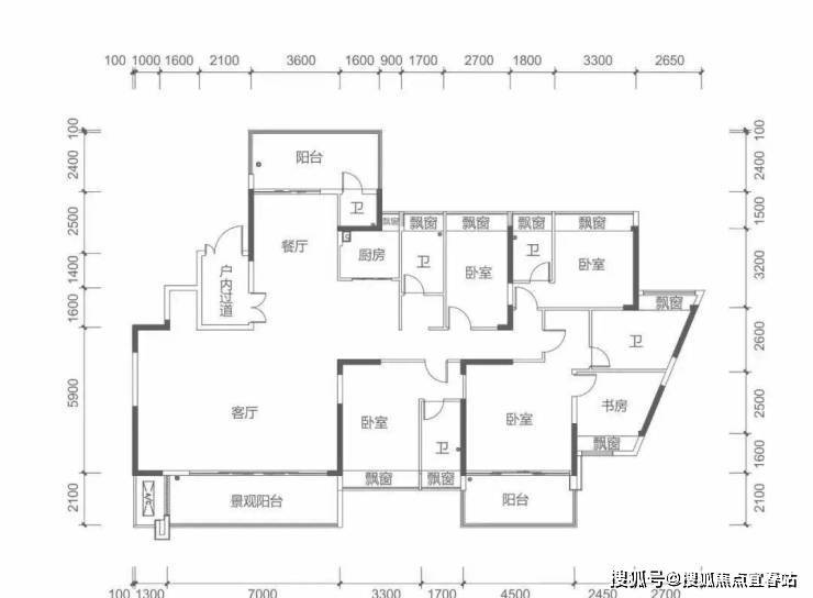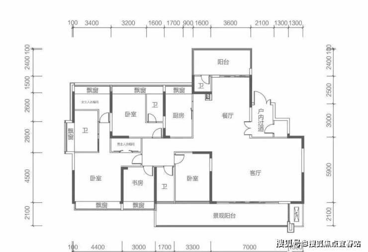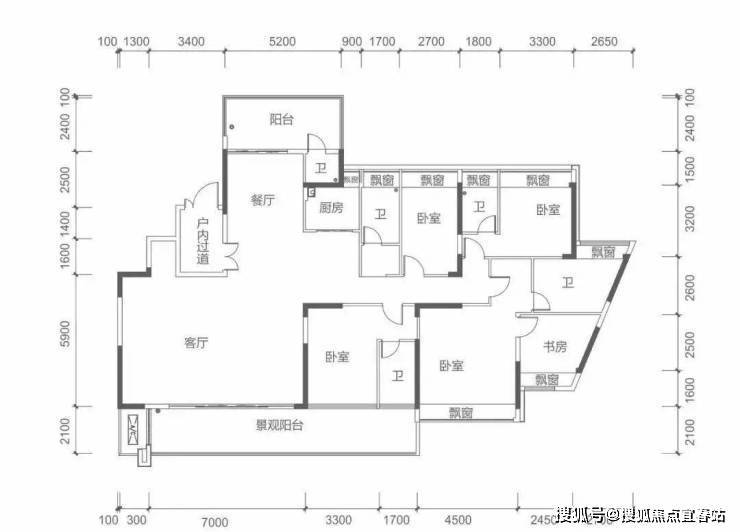 7栋奇数层 M户型建面约260㎡ 5房2厅5卫