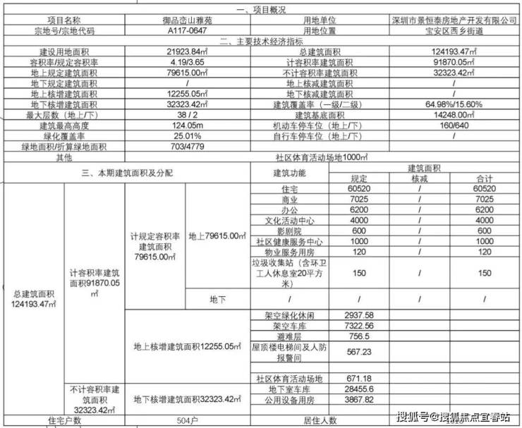 项目总建设用地面积约2.19万m²,总建筑面积约12.42万m²,容积率4.19,车位比约1:1.29。
