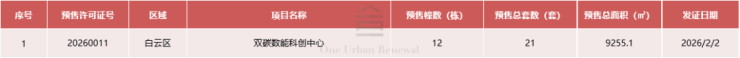 项目住宅部分已于2025年1月整体出售给广州市建筑集团,作为瑶台地区安置房使用,是越秀区旧改安置工作的重要载体。预计2026年6月完成安置交付,商业招商工作同步进行,将为瑶台地区城中村改造及老城区焕发新活力注入强劲动能。