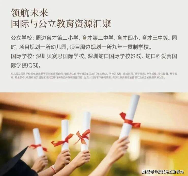 :当前对口的育才二小和育才二中,均属南山第一梯队学区,教育质量有口皆碑。项目自身还配建了一所幼儿园和一所九年一贯制学校,未来孩子在家门口就能享受到优质的教育资源,为孩子的成长成才奠定坚实基础 。
