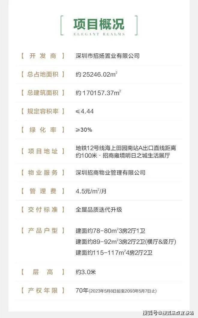 招商会展湾雍境名邸,由招商集团打造,总占地面积约2.52万㎡,总建筑面积约16.95万㎡,计容建筑面积约11.76万㎡,容积率4.3,分2个地块开发,共由6栋总高26-31层高的住宅组成,其中1栋1单元公租房26F,1栋2单元自持租赁30F,1栋3单元/2栋住宅31F,3栋/5栋住宅32F,4栋是1所9班制幼儿园。