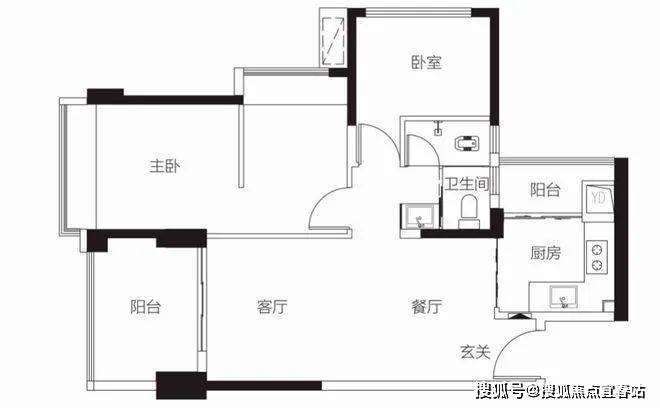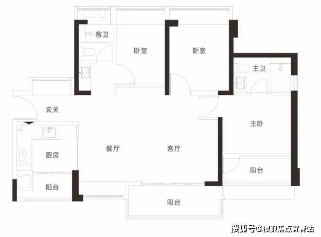 【3栋4栋03户型107㎡3房2卫】客厅横厅朝南带阳台,主卧朝南,2房朝北