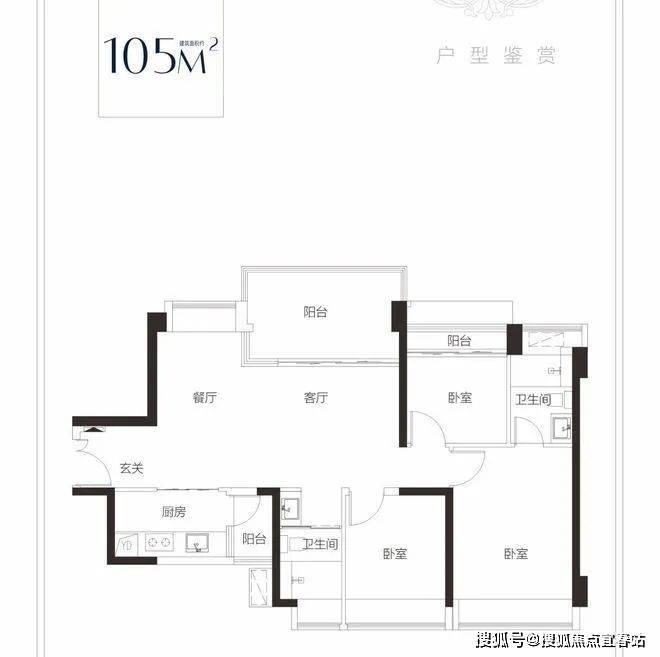 【104㎡3房2卫户型】双龙抱珠户型,奢阔舒适三房全明户型,三面采光,看中心园林景观