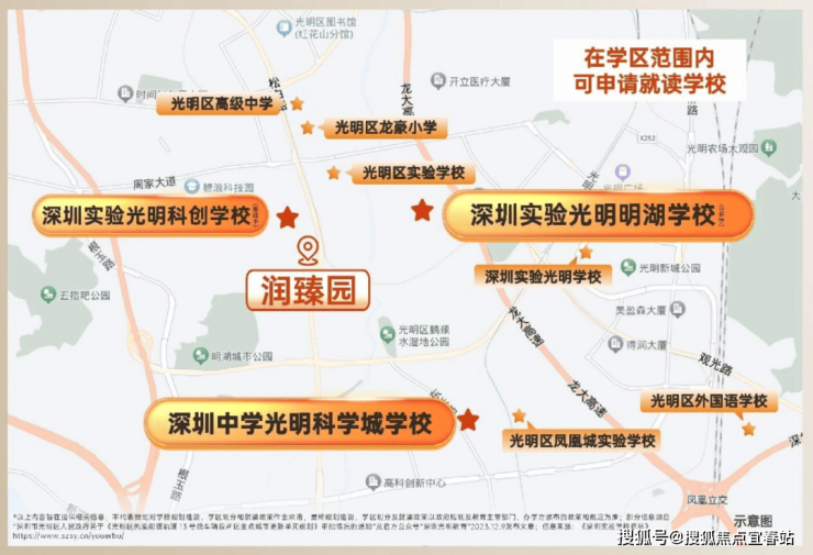 规划3所九年一贯制学校:深圳实验光明明湖学校(已开学,2025年9月)、深圳实验光明科创学校(在建中,预计2026年9月)、深圳中学光明科学城学校。双名校学区,整个深圳都少见。小区内还配了幼儿园。
