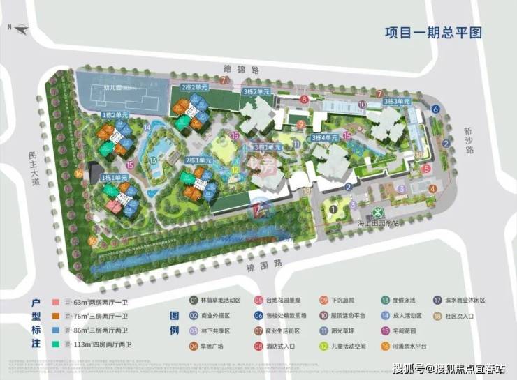 户型:建面约63㎡两房一卫约76㎡三房一卫//约86㎡三房两卫/约113㎡四房两卫