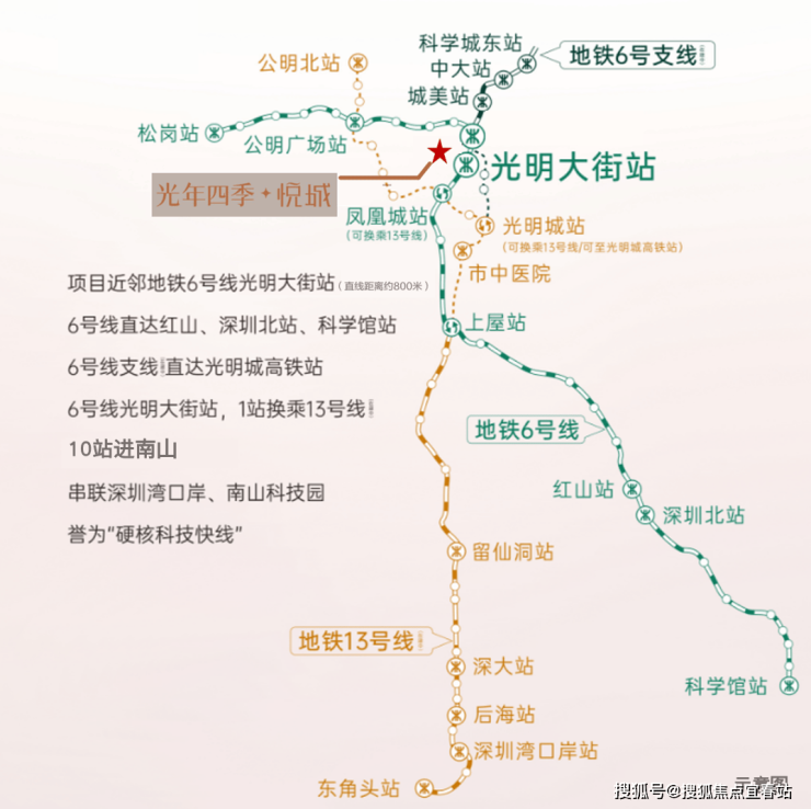 3地铁:6号线光明大街站 、6号线支线、13号线(在建中,一期南段预计今年年底开通);