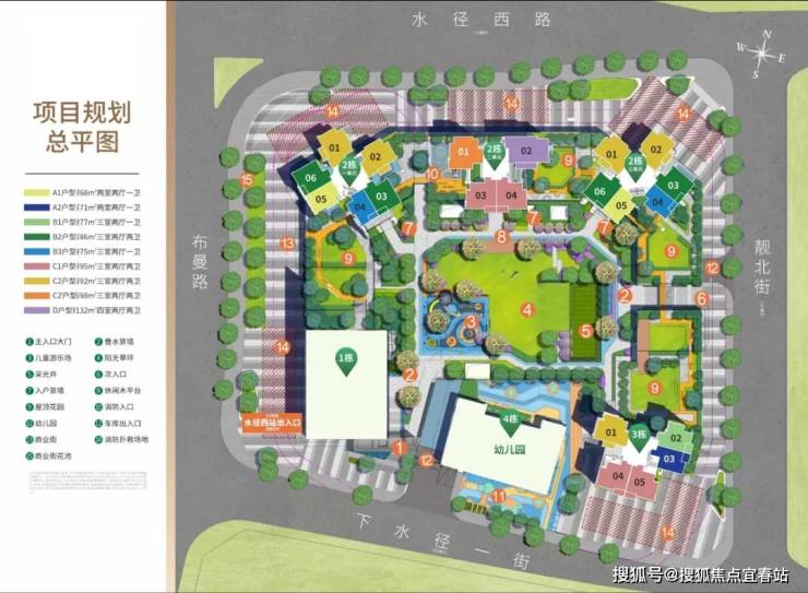 建筑采用现代风格设计,强调简约而不简单,打造既美观又安全的小区;整体呈围合式布局,开阔了视野,并且保证了每户的通风和采光。
