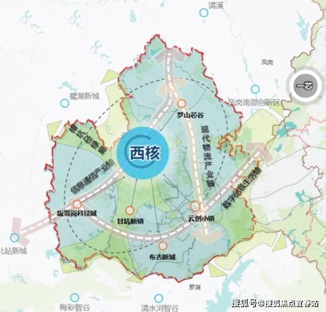 吉华承担着建设龙岗区“一芯两核多支点”发展战略中的“西核”——数字信息核、协同周边区域打造世界级ICT产业集群承载区、构筑龙岗“都市科技绿芯”的使命任务。片区与坂雪岗科技城仅一路之隔,具备承载世界级电子信息产业集群辐射的政策优势和天然区位优势。