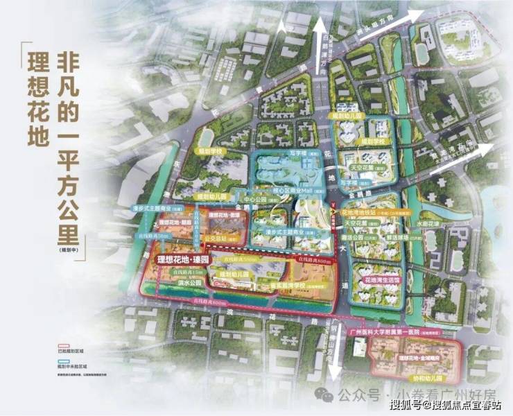 理想花地约18万㎡城市级购物中心、约7.5万方社区及街区商业、约2.5万方精品商业中心(规划中)
