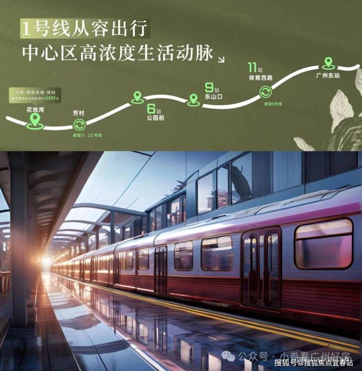 位于6线地铁、9条城市/城际轨道交汇处(规划中) 瑧园距离地铁1号线花地湾站直线距离约600米,1站到白鹅潭核心商务区,换乘11号线畅通中心4区。