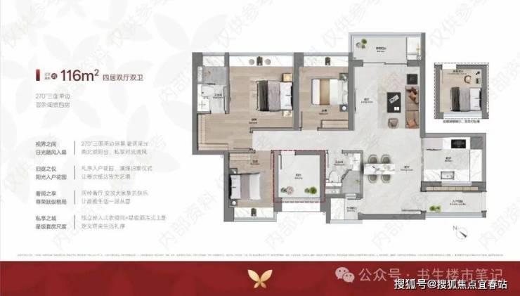🏆建面约116㎡-270°单边王 四房双厅双卫