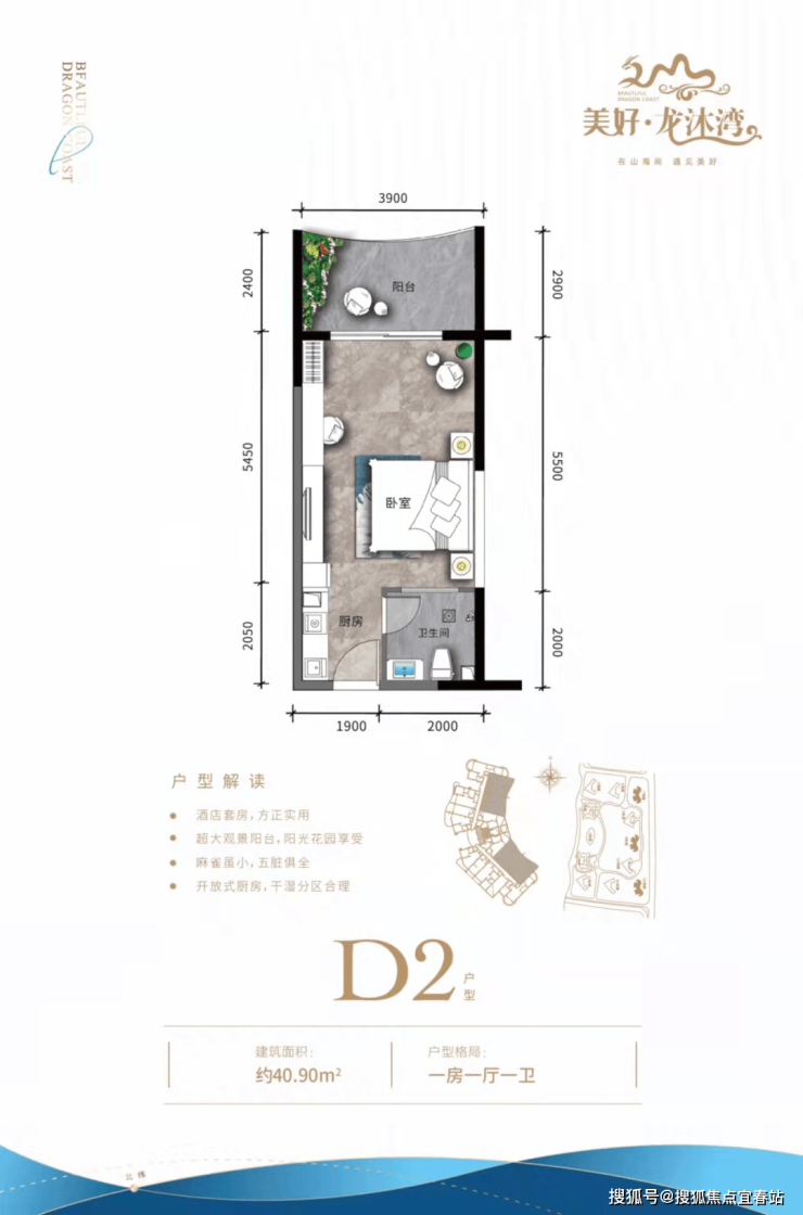 ① 开间户型独立明卫,各功能区域俱全,瞰景阳台,超大景观面宽