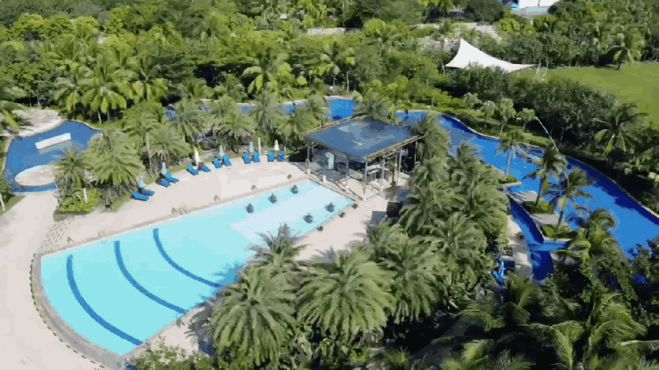 清水湾南向中国南海,背靠九所岭,接壤吊罗山山脉和国家森林公园,是典型的“背山面海”之地,森林覆盖率高达56%以上,椰林+海洋双重负氧离子环绕,是名副其实的“天然大氧吧”。