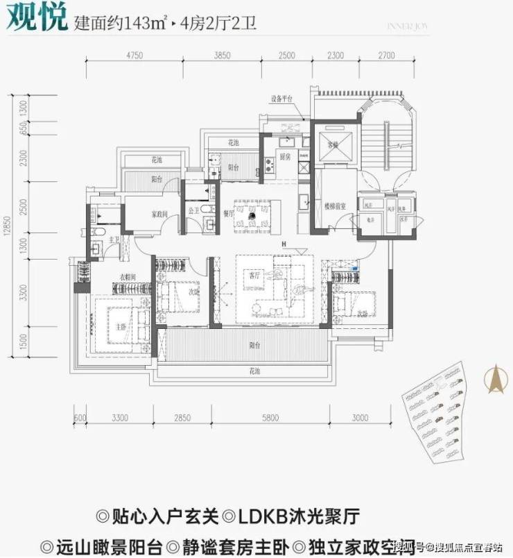 113-143㎡三房至四房、独梯入户板楼设计、270°全景飘窗、南北双阳台、超高得房率、体贴入微的精装标准,超高性价比尊享豪宅体验。