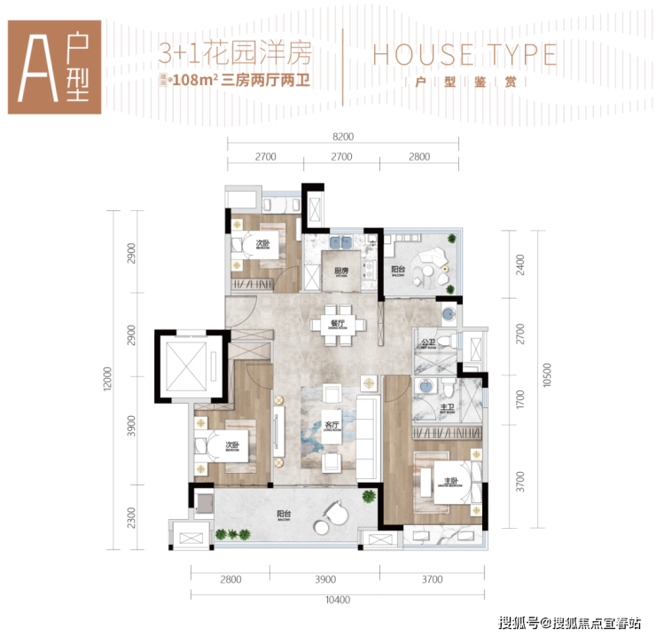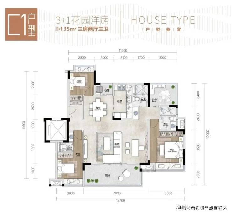 ▲户型:108-135㎡3+1房,一梯两户纯板房