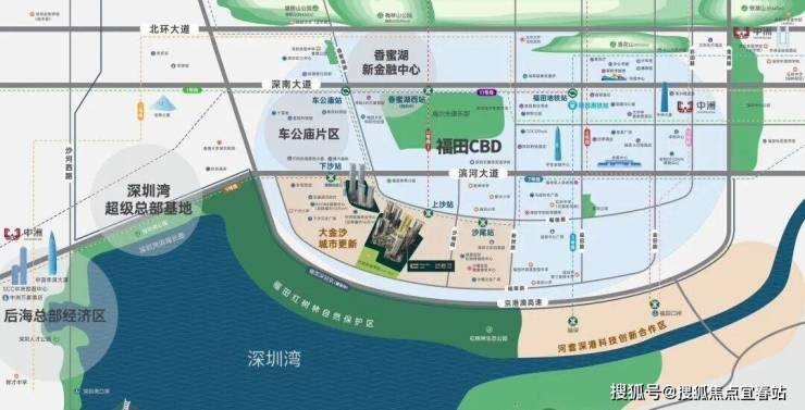 1、地处上下沙,离福田中心区,车公庙、香蜜湖、深港口岸都不算远;