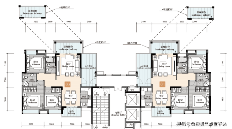 建筑面积约122-229㎡三/四房,户户南北通透,2梯4户的点式设计,具有非常好的采光和通风效果。